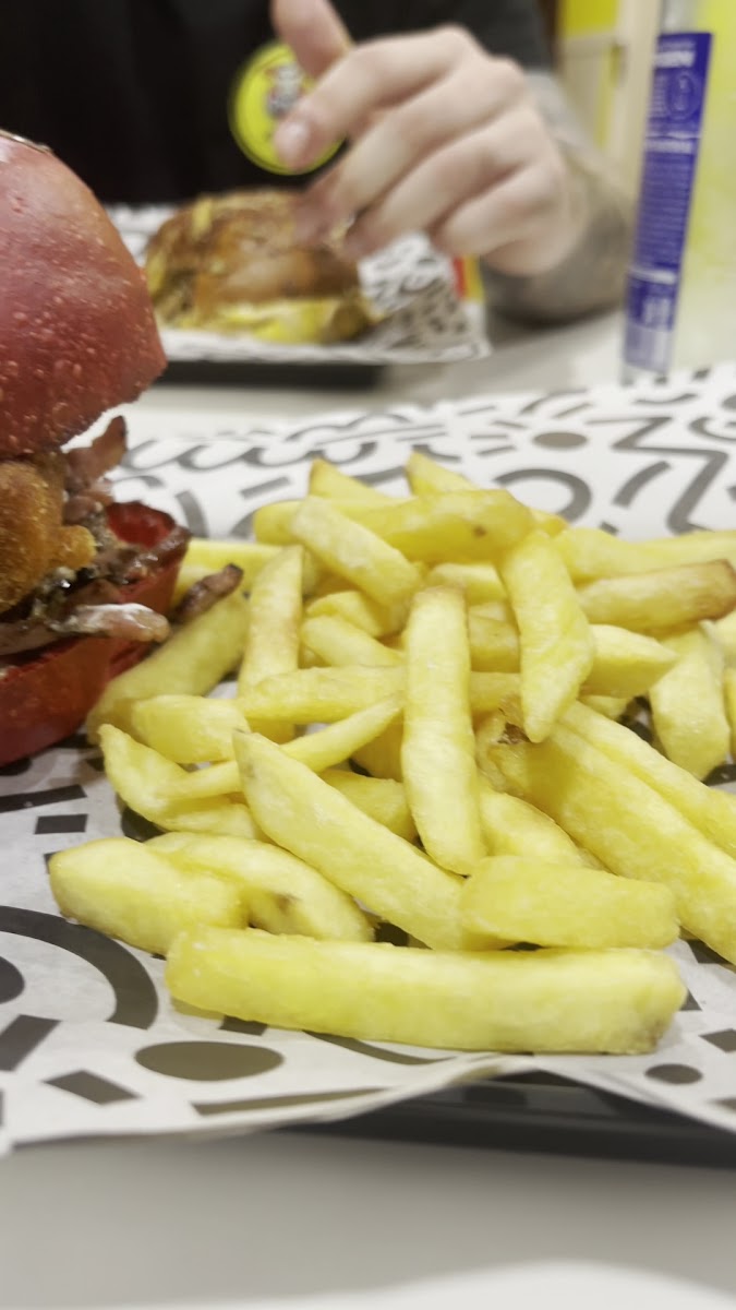 Nos costó un poco entender la carta pero fueron muy amables explicando como funciona para pedir personalizado. Las hamburguesas son bastante grandes, van cargadas y están muy buenas, además van con algunas patatas incluidas. Los fingers de pollo estaban también muy tiernos y crujientes por fuera, los recomiendo. La tarta de queso se la comió mi amiga y también le gustó mucho. La próxima vez probaré los hotdogs!